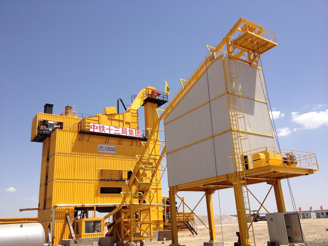 2012年6月8日,鉴于客户工期临近,意玛集全公司的力量,想用户之所想急用户之所急,狠抓实干,准时顺利地把各集装箱分系统全部运抵中铁13局位于宁夏银川的工地,经过短短几天的安装调试试生产,各项监控指标全部正常,工地用户对此表示高度的赞扬并顺利地通过了中铁^组的验收。目前,江苏意玛4000型沥青拌和站正以优良的业绩表现服务于宁夏银川的公路建设。